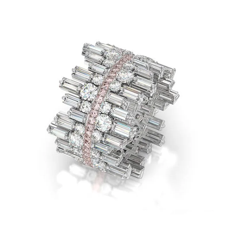 Elevate your elegance with this stunning cubic zirconia ring, designed to bring sophistication to any occasion. The silver-toned band perfectly complements the irregularly set stones, giving it a unique, eye-catching allure ideal for weddings, parties, and other celebrations.