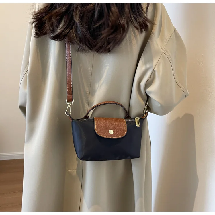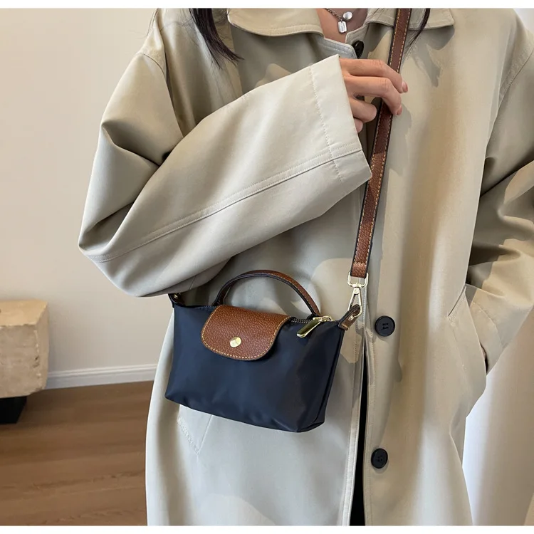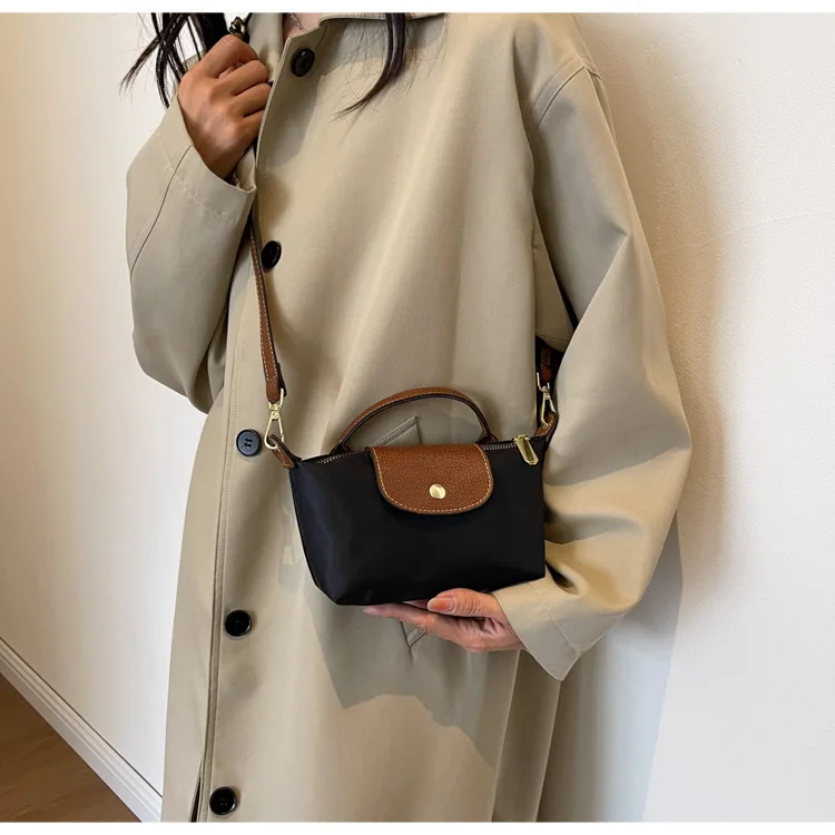 This Mini Nylon Dumpling Bag combines style and functionality, making it an ideal choice for everyday use. Its compact design, paired with a high-end nylon fabric, offers durability and a sophisticated look. Perfect for carrying your essentials like a mobile phone, wallet, and small accessories, this bag is a versatile addition to any wardrobe.