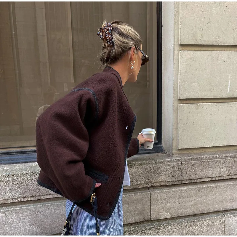 This retro wool blend coat combines timeless elegance with everyday functionality, making it a versatile addition to any wardrobe. Its structured silhouette and stand collar add a sophisticated touch, while the single-breasted design ensures a classic look. Perfect for autumn and winter, this coat provides warmth and comfort without compromising style.