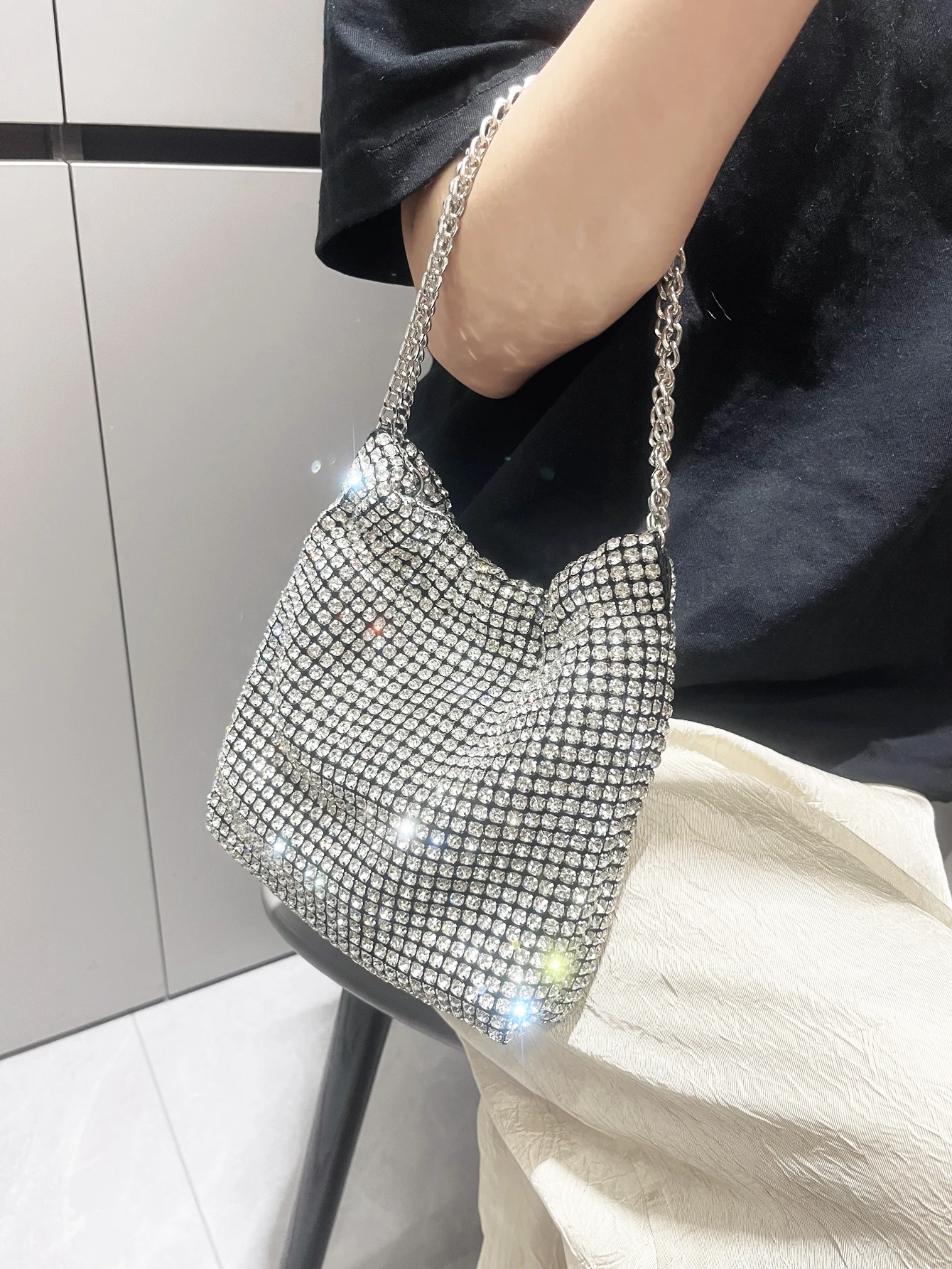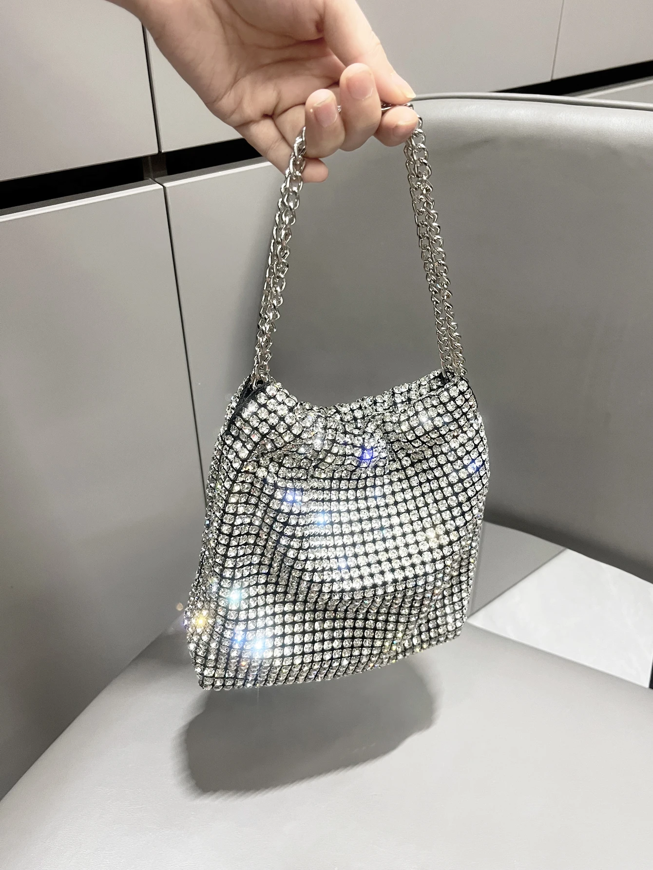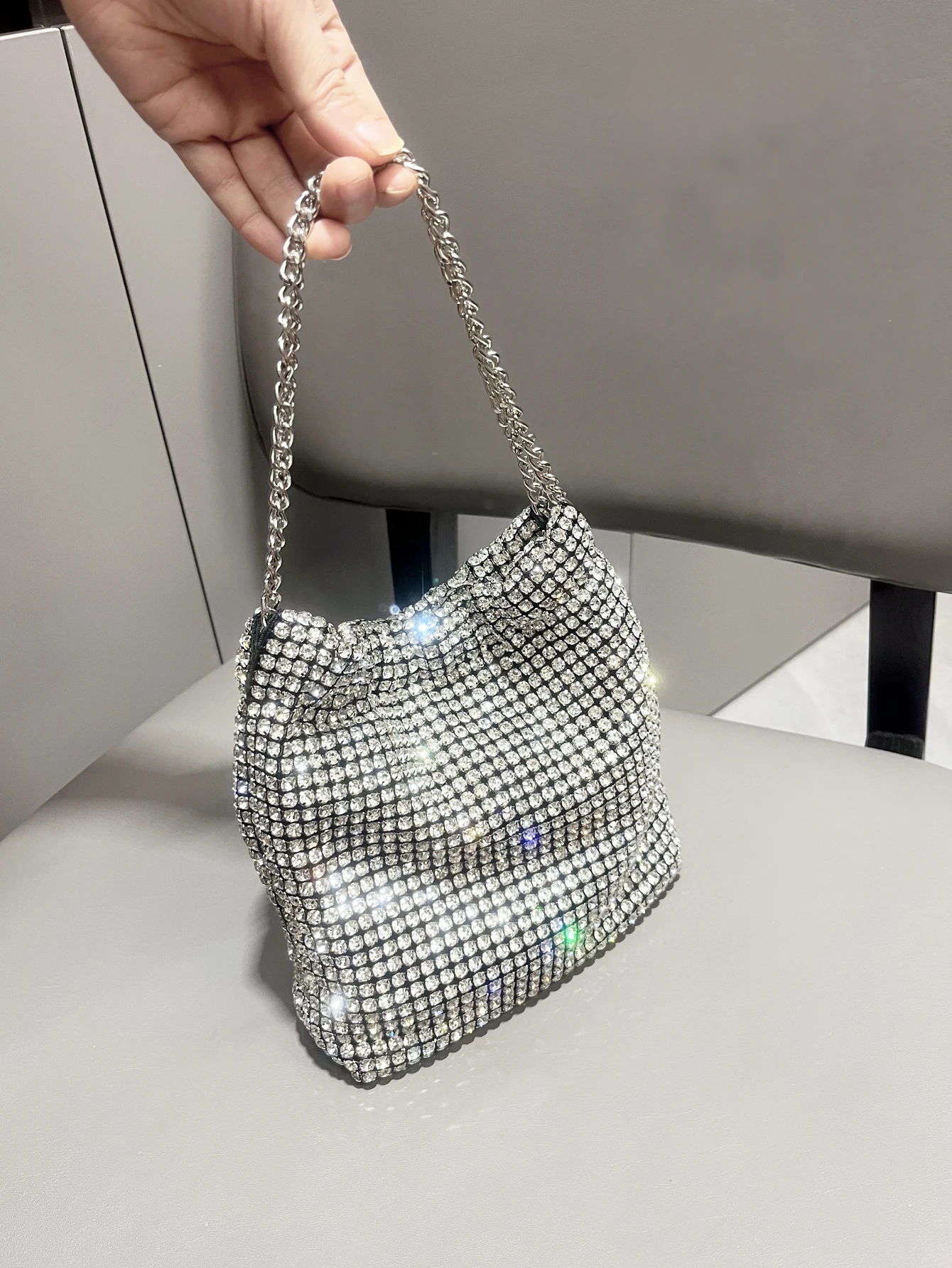This luxurious shoulder bag combines timeless elegance with a striking rhinestone finish, perfect for evening events or special occasions. Its hobo shape and dazzling design make it a standout accessory, while the practical interior keeps your essentials secure.