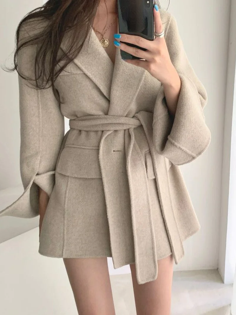 This jacket combines chic style with functionality. The slim waist bandage design ensures that you look polished and put together, while the soft fabric keeps you warm. Whether worn over a blouse for a sophisticated office look or paired with jeans for a more casual vibe, this jacket is a versatile addition to any wardrobe. Embrace the fashion-forward style of the season with this sleek and elegant jacket that is sure to make a statement.