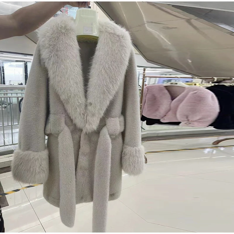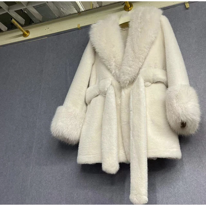 Elevate your winter wardrobe with this luxurious faux fur coat, designed for style and warmth. Featuring a plush fox fur-like collar, this oversized coat is perfect for layering over any outfit, providing a sophisticated and cozy touch. Its timeless design, long sleeves, and adjustable belt make it an elegant choice for chilly days.